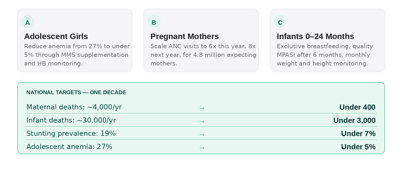 The first 1,000 days of life — from conception to the second birthday — represent the single most critical window for human development. Nutritional deficiencies, infections, and inadequate care during this window cause irreversible damage to cognitive capacity, physical growth, and immune function. These early years are not merely a health concern; they are the foundation of Indonesia's future human capital.